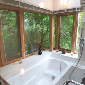 主要用途:住宅 構 造:木造、鉄筋コンクリート造(地階) 階 数:地上2階、地下1階 敷地面積:129.32㎡ 建築面積:64.74㎡ 延床面積:182.00㎡ 設 計:谷口建築設計室 施 工:高橋工務店