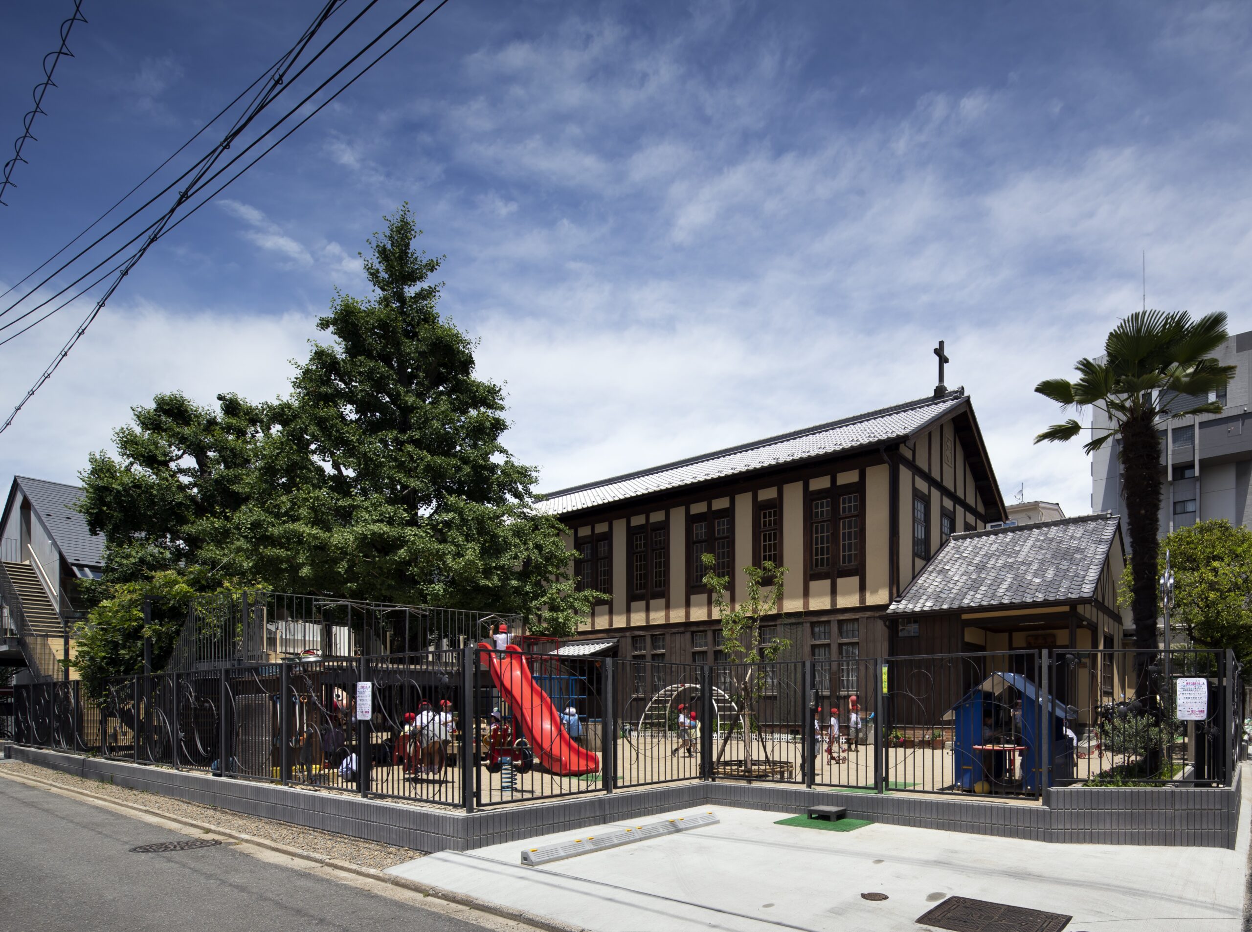 主要用途:幼稚園 構 造:鉄骨造 階 数:地上3階 敷地面積:981.73㎡ 建築面積:563.7㎡ 延床面積:984.42㎡ 設計監理:設計組織DNA 施 工:高橋工務店